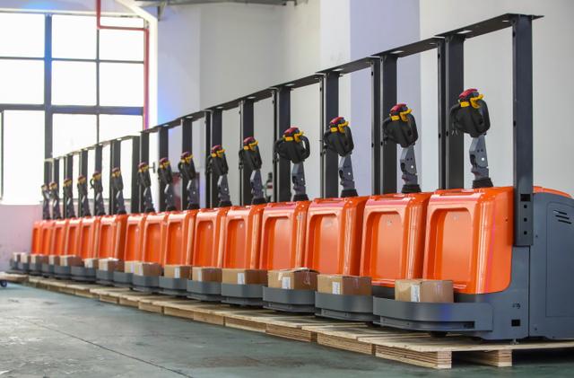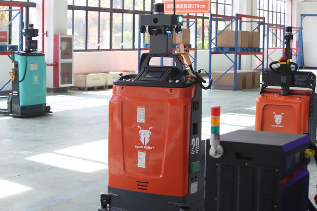 一辆辆橙色的“无人叉车”木蚁机器人正在湖州南浔长三角智能制造产业园内测试运输货物,这代表着这家上海的科技公司正式落户到浙江湖州南浔。 该项目负责人钱永强介绍:“无人叉车”又称“无人驾驶叉车”或“叉车AGV”,是一种智能工业车辆机器人,它融合了叉车技术和AGV技术,与传统AGV相比,它除了能完成点对点的物料搬运之外,更能实现多个生产环节对接的物流运输,不仅擅长高位仓库、库外收货区、产线转运三大场景,而且在重载、特殊搬运等场景也有着不可替代的作用。 通过无人叉车的应用,可以解决工业生产和仓储物流作业过程中物流量大、人工搬运劳动强度高等问题。 据悉,木蚁科技所在的湖州南浔长三角智能制造产业园是当地开发区重点打造的园区,是加快推动传统产业转型升级的示范园区,见证了企业在南浔从无到有、从小到达、做大做强的过程,为当地制造装备企业高质量发展注入了新的动力。依托湖州南浔当地独特的优势、良好的投资环境和齐全的配套,将吸引更多的高端制造产业项目选择并落户。 7月4日,一辆辆橙色的“无人叉车”木蚁机器人正在湖州南浔长三角智能制造产业园内测试运输货物 6月28日,产品发布会上,各类机器人正在向观众展示运输过程