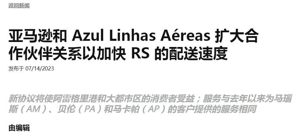一、拓展航线覆盖范畴 近期,亚马逊巴西公司与巴西著名航空公司 Azul Linhas Aéreas Brasileiras(简称为 Azul)宣告达成深度合作协定,旨在通过拓展航线网络,大幅提高全国范畴内的货物运输速度,达成对巴西 90%城市的全方位覆盖,涵盖偏远区域。 扩大合作航线 图源:R7 此合作不仅意味着亚马逊在巴西物流体系方面实现了重大升级,还为巴西消费者赋予了前所未有的购物便捷性。过往,受地理条件所限,北部区域的物流效率相对偏低,消费者通常需要历经较长时间方可收到包裹。现今,借助 Azul 的航空网络,诸如玛瑙斯、贝伦等北部大型城市的消费者能够在 2 天之内接收到亚马逊的订单。 亚马逊与 Azul 的此次合作可谓是强者联合,据悉,亚马逊和 Azul 在全国总计拥有 42 条路线。且自双方开启合作以后,双方已然在巴西不同地区完成了超过 1200 万件产品的配送。实际上,亚马逊拓展与 Azul 的合作关系并不令人感到讶异,毕竟在此之前,亚马逊已多次宣告延长与 Azul 航空公司的合同。 亚马逊延长合作 图源:mundo logistica 除航线拓展之外,亚马逊与 Azul 之间的合作亦在技术应用以及流程优化层面有所体现。双方将会携手探索借助大数据、人工智能等前沿技术,针对物流路径予以精确规划,以缩减运输时长,降低运营成本。 二、争相布局 实际上,在亚马逊屡屡加大力度并押注于巴西市场的行为背后,潜藏着其宏大的雄心壮志。在全球化浪潮的驱动之下,巴西电商市场正以空前的速率蓬勃兴起,成为拉丁美洲乃至全球电商范畴内的一颗璀璨明星。 源自巴西电商协会所发布的数据表明,在 2023 年,巴西零售电商市场的规模达 1850 亿雷亚尔,此数字预计至 2024 年将增长至 2042.7 亿雷亚尔,且在未来仍将持续增长。无独有偶,Mordor Intelligence 对于巴西电商的发展前景同样秉持积极之态度,认为在 2023 年至 2028 年期间,该市场将会以 18.91%的复合年增长率实现迅猛发展。 巴西电商市场规模继续增长 图源:ABComm 在显著的商业机遇面前,无人甘愿轻易错失。鉴于这般极具吸引力的市场态势,全球电商领域的巨头们皆积极筹备,争相于巴西市场进行布局。 其中,拉美本土的电商巨头美客多无疑乃是市场的引领者。据相关数据表明,截至 2024 年 1 月 31 日,美客多在巴西电商平台的访问量中占有 13.6%的市场份额,大幅超越第二名亚马逊的 7.7%。为巩固并拓展其市场优势,2024 年,美客多宣告将投入 230 亿雷亚尔,着重于巴西市场进行布局,彰显了其对于该市场的笃定信念和宏大决心。 美客多在巴西的投资金额节节攀升 图源:NEOFEED 此外,源自东南亚的电商平台 Shopee 以及作为中国出海四小龙之一的 SHEIN 均洞察到巴西市场所蕴含的巨大潜能,于此投入了诸多精力。“一分耕耘一分收获”,深度耕耘巴西市场的巨头们皆斩获颇丰,例如 Shopee 巴西站点借助直播带货所实现的收入增长逾十倍。 总之,巴西电商市场的潜力正在迸发,已然演变为各大电商巨头的掘金要地。伴随市场的持续成熟以及消费者需求的日渐多元化,巴西电商市场将会迎来更为广阔的发展前景。直面这一市场蓝海,跨境电商从业者们应当把握契机,积极开拓巴西市场,为当地消费者供应更多优质且多元化的产品。