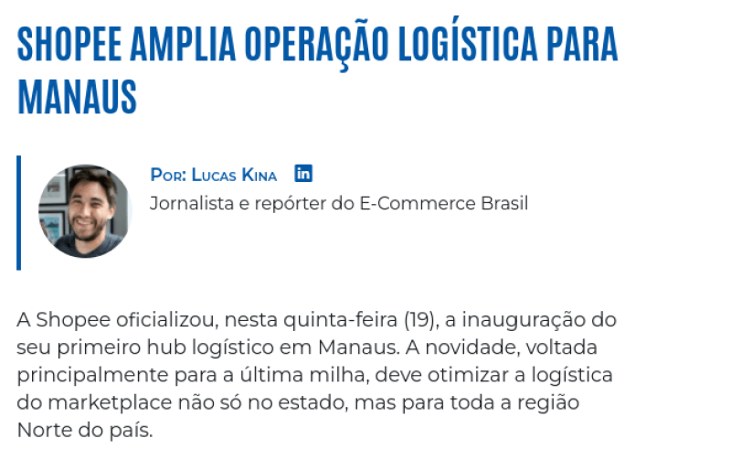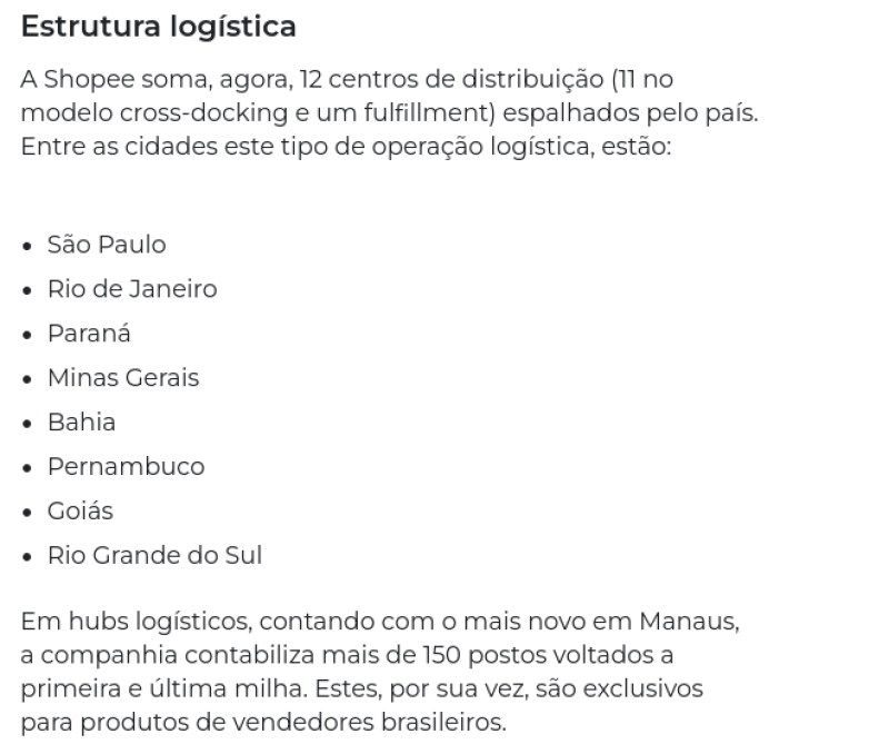 Shopee宣布在巴西马瑙斯设立首个物流中心,以加强亚马逊州及整个北部地区的物流网络,提升市场配送效率。此次扩张旨在优化“最后一英里”配送服务,满足区域卖家和消费者的物流需求。除新设的马瑙斯物流中心外,Shopee还在北部地区的帕尔马斯和贝伦设有两个物流中心,为卖家和消费者提供更便捷的服务支持。 图源:E-Commerce Brasil 目前,Shopee在巴西已经建成了12个配送中心,包括11个越库配送中心和1个综合物流中心,形成覆盖全国的物流网络。在新设的物流中心,Shopee通过超150个站点专注于“第一英里”和“最后一英里”物流运作,服务于巴西本地卖家。 Shopee的物流流程以卖家确认订单后准备商品为起点,商品通过“第一英里”车辆从卖家手中收集,或由零售商送至Shopee的2500多个收集点。随后,订单将被送至配送中心进行分拣,并转发至“最后一英里”枢纽,由超过20,000名合作司机负责安排和配送,确保高效完成订单交付。 Shopee内部数据显示,每月约有十分之二的亚马逊州用户使用其应用。近期热搜商品包括裙子、耳机、壁纸及圣诞树,畅销品则包括电炸锅、投影仪、耳机、床垫套和扬声器。通过物流网络的持续扩展,Shopee将有效提升巴西北部的运营效率,并进一步巩固其在巴西电商市场的竞争力。 图源:E-Commerce Brasil