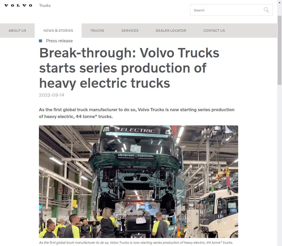 9月14日,瑞典卡车制造商沃尔沃卡车表示,正在开始批量生产沃尔沃FH、沃尔沃FM和沃尔沃FMX等车型的电动版本。这些车型约占该集团总销量的三分之二,在全球范围内共有六款电动卡车在批量生产之中。 沃尔沃卡车将在位于瑞典哥德堡(Gothenburg)的图夫(Tuve)工厂生产电动重卡,明年该公司位于比利时根特(Ghent)的工厂也将开始生产这些车型。车辆所需的电池将由该公司位于根特的新电池工厂提供。