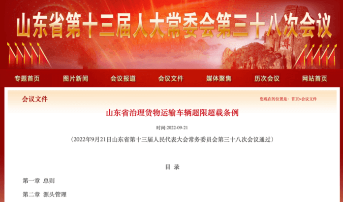 9月21日,山东省十三届人大常委会第三十八次会议审议通过《山东省治理货物运输车辆超限超载条例》(以下简称《条例》),自2023年1月1日起施行。《条例》共6章44条,分别从源头管理、通行治理和保障措施等方面作出了规定。 治超先治本,源头是关键。源头治理是杜绝违法超限超载运输车辆上路行驶的强力手段,也是当前治超工作的核心内容之一。对涉及车辆源头的各个环节实行全链条监管,《条例》从车辆生产、销售、登记、审验、改装、维修、检测、报废回收等环节,规定了相关部门的监管职责;同时规定交通运输、公安、工业和信息化、市场监督管理、商务等部门对货运车辆拼装、非法改装进行联动处理,着力解决车辆生产企业按照客户要求“量身定做”货运车辆,造成“大吨小标”的非法改装、拼装问题。 针对货物装载、配载源头单位制度落实难、监管不明晰的问题,《条例》按照“管行业必须管安全”的原则,将货物装载、配载源头单位纳入安全生产监管范围,明确各行业主管部门对货物装载、配载源头的监管责任,规定设区的市和县(市、区)人民政府有关部门应当按照职责分工,负责本级人民政府公布的货物装载、配载源头单位安全生产的监督管理,督促相关企业和单位落实货物装载、配载的各项要求,依法查处违法行为。《条例》还规定源头单位应当建立货物装载和配载制度、公示法定标准、安装称重和监控设备、如实计重检测、保存信息等,并设定了相应法律责任。 “近年来,各地交通运输主管部门和公安机关积极探索推进公路治超联合执法常态化制度化,多头执法、重复罚款问题得到有效解决。”省人大常委会办公厅一级巡视员石晓介绍,为了进一步固化联合执法的经验做法,健全长效工作机制,《条例》作出以下规定:一是县级以上人民政府交通运输主管部门和公安机关应当建立健全执法协作机制,开展联合执法,依法查处违法超限超载运输行为。二是实行驻站联合执法和流动执法检查,建立健全快速处理协作机制,提高执法效率,探索跨省治超联动机制。三是建立健全信息互联互通机制,实时共享货物运输车辆信息和超限超载违法行为以及行政处罚相关信息,实现数据交换共享和业务协同办理。 为了强化治超执法规范化,《条例》对公路超限检测站的布局设置、设施配备和检测程序提出具体要求,对设置超限检测技术监控设施的选点要求、公告时间、执法程序进行规范,“县级以上人民政府交通运输主管部门可以在主要货物运输通道、重要桥梁入口、省界出入口以及货物运输流量较大的路段和节点,设置超限检测技术监控设施以及明显标志。超限检测技术监控设施投入使用的,县级以上人民政府交通运输主管部门应当提前三十日在当地主要媒体或者官方网站等进行公告。”并规定货物运输车辆应当按照交通标志、标线行经超限检测技术监控区域,不得有下列行为:超低速行驶、急刹车、多车辆并排或者首尾紧随;偏离称重装置边轮通过;不按照规定车道行驶;遮挡、污损机动车号牌,或者使用伪造、变造的机动车号牌;违法驶入禁行区域;逃避、干扰检测的其他行为。还分别对违法超限超载运输货物的卸载、分装、保管以及查处车辆停放作出规定,在严格规范执法的同时,保护公共和个人财产安全。 “利益驱动、无序竞争是导致超限超载现象频发的主要原因,合理确定运输价格、避免恶性竞争是治理超限超载的关键之策。”石晓介绍,《条例》规定县级以上人民政府应当优化审批流程,加强道路货物运输市场运行监测分析,促进货物运输价格合理形成、运力合理利用,维护公平竞争的市场秩序。