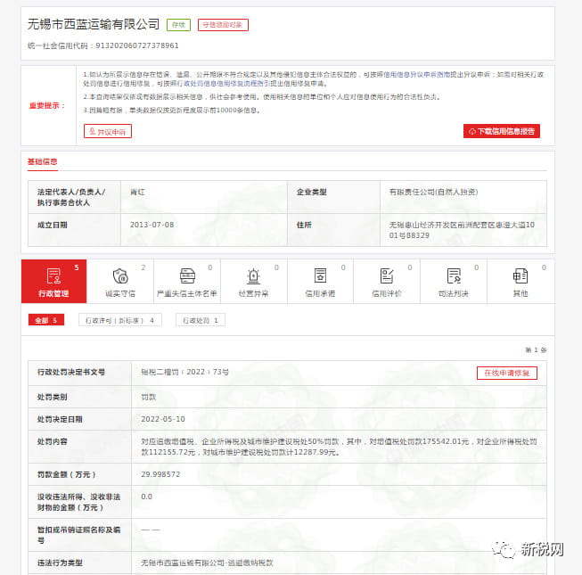 近日,全国多家物流货运公司因虚开发票被查!这些货运公司被查的原因均为接受了知名网络货运平台浙江沈氏省心物流科技有限公司(以下简称浙江沈氏公司)开具的增值税专用发票,这些发票已经被判定为虚开。 去年9月2日,浙江沈氏公司的官方微信公众号“省事物流平台”发出情况说明称,浙江省事省心物流科技有限公司,现在因涉嫌虚开增值税专用发票被税局和公安经侦部门立案调查,我们正积极应对此次公司的法律风险,截止今日,该案尚在公安侦查阶段,未经法院审判,感谢您的一直关注。 2020年5月19日,丽水市货运物流企业——浙江沈氏公司经过省交通运输主管部门的互联监测,通过线上服务能力审核、接口接入审核、八项能力认定审核等程序,取得了浙江省第一张“网络货运”资质的道路运输经营许可证,也是丽水市唯一的一张“网络货运”牌照。 一、张家港保税区一物流公司 行政处罚决定书文号:苏保税稽罚﹝2022﹞13号 违法事实显示,该公司(一)涉案发票认证抵扣及成本列支情况 该单位取得浙江沈氏省心物流科技有限公司(以下简称浙江沈氏公司)开具的10份增值税专用发票(发票代码3300193130,发票号码32498951、32567158、48761236、48998269、49051384、49181332-49181333、49338278、49541718、49622983,金额6079911.02元,税额547189.60元,价税合计6627100.62元),于所属期2020年4月抵扣增值税进项税额142385.11元,所属期2020年7月抵扣增值税进项税额76539.80元,所属期2020年8月抵扣增值税进项税额246569.89元,所属期2020年9月抵扣增值税进项税额63870.48元,所属期2020年12月抵扣增值税进项税额17824.32元,并于2020年度企业所得税税前列支成本6079911.02元。 (二)取得发票的过程 1.对涉案人员的调查情况 根据该单位实际负责人黄某询问笔录,及账务处理等证据资料,该单位主要从事运输业务,运力不足时会把部分运输业务根据货源地分包给各地的货物配载,而这些货物配载作为个人运输者一般都不开具运输发票或让其他公司开具发票。为了保证取得的运输发票没有问题,经朋友介绍黄某认识了浙江一大型物流平台企业——浙江沈氏公司的业务推广员张某,双方选定“无车承运模式”作为合作方式,并签订合作协议。双方只就协议完成资金走账,在形式上完成“无车承运”业务,实际运费并不支付给浙江沈氏公司,而是按运费5.5%作为开票“服务费”支付给浙江沈氏公司。该单位现无法补开符合规定的发票。该单位根据发票金额通过银行转账到浙江沈氏公司账户,浙江沈氏公司在扣除5.5%的“服务费”后将余额转入黄某提供的个人账户。根据双方之间的合作协议,该单位打款给浙江沈氏公司后,浙江沈氏公司扣除开票“服务费”后把余款直接转给“实际承运方”,杨某红等个人账户是黄某以“实际承运方”名义提供给浙江沈氏公司的。该单位无法换开/补开发票。 2.资金流检查 该单位账面支付给浙江沈氏公司6627100.49元,其中通过银行转账支付给浙江沈氏公司6627100.43 元,差额部分为现金支付。浙江沈氏公司扣除5.5%的“服务费”后将余额转入黄某提供的实际承运个人账户,如杨某红、石某飞和郭某等,共计6262010.00元,差额 365090.43元。国家税务总局丽水市税务局第二稽查局提供的材料同样印证了回款情况以及服务费率5.5%的事实。 3.货物流检查 该单位提供有运输服务清单和运输车辆行驶证、机动车驾驶证等材料。综合上述检查情况及证据材料来看,浙江沈氏公司与该单位并无真实业务,该单位通过支付开票“服务费”的方式取得发票的行为属于虚开增值税专用发票。 该单位取得定性虚开的增值税专用发票,不得作为增值税合法有效的扣税凭证抵扣其进项税额。 《中华人民共和国税收征收管理法》第六十三条第一款的规定,该单位以支付开票“服务费”方式取得发票,进行虚假的纳税申报,造成少缴增值税、城市维护建设税的行为已构成偷税,同时根据《纳税信用管理办法(试行)》(国家税务总局公告2014年第40号)第三十二条第五款的规定 国家税务总局张家港保税区税务局稽查局对该公司处造成少缴增值税税款547189.60元百分之六十的罚款328313.76元,处造成少缴城市维护建设税27359.48元百分之六十的罚款16415.68元。 二、惠州市一物流有限公司 行政处罚决定文书号:惠税一稽罚〔2022〕110号 违法事实:该单位取得浙江沈氏省心物流科技有限公司(以下简称沈氏公司)2020年7月至2021年1月开具的7份增值税专用发票(发票代码:*,发票号码:*,金额合计:864,978.68元,税额合计:77,848.12元,价税合计:942,826.80元),被国家税务总局丽水市税务局第二稽查局来函证实为虚开发票。 经检查,因该单位因业务发展需要,通过沈氏公司业务员赖经理(联系电话:1*8)介绍了解到对方公司设立的无车承运人平台,经过上门沟通、平台叫车演示,于2020年9月9日双方正式签订运输合同,合同约定该单位在平台上发出用车需求时,平台找出相应匹配运力的运输车辆,将货物安全韵达目的后,该单位根据客户的签收单等单据确认运输金额,按月凭发票通过银行支付运费。但因该平台业务不成熟,该单位单独联系与个人司机的合作业务不能在平台上交易,只能直接跟司机结算运费。因此赖经理表示在平台完善期间,该单位需根据每个月的业务量向对方申请开具增值税发票,并要求支付5.6%的服务手续费。该单位将相应的运费以公账转账方式支付到沈氏
