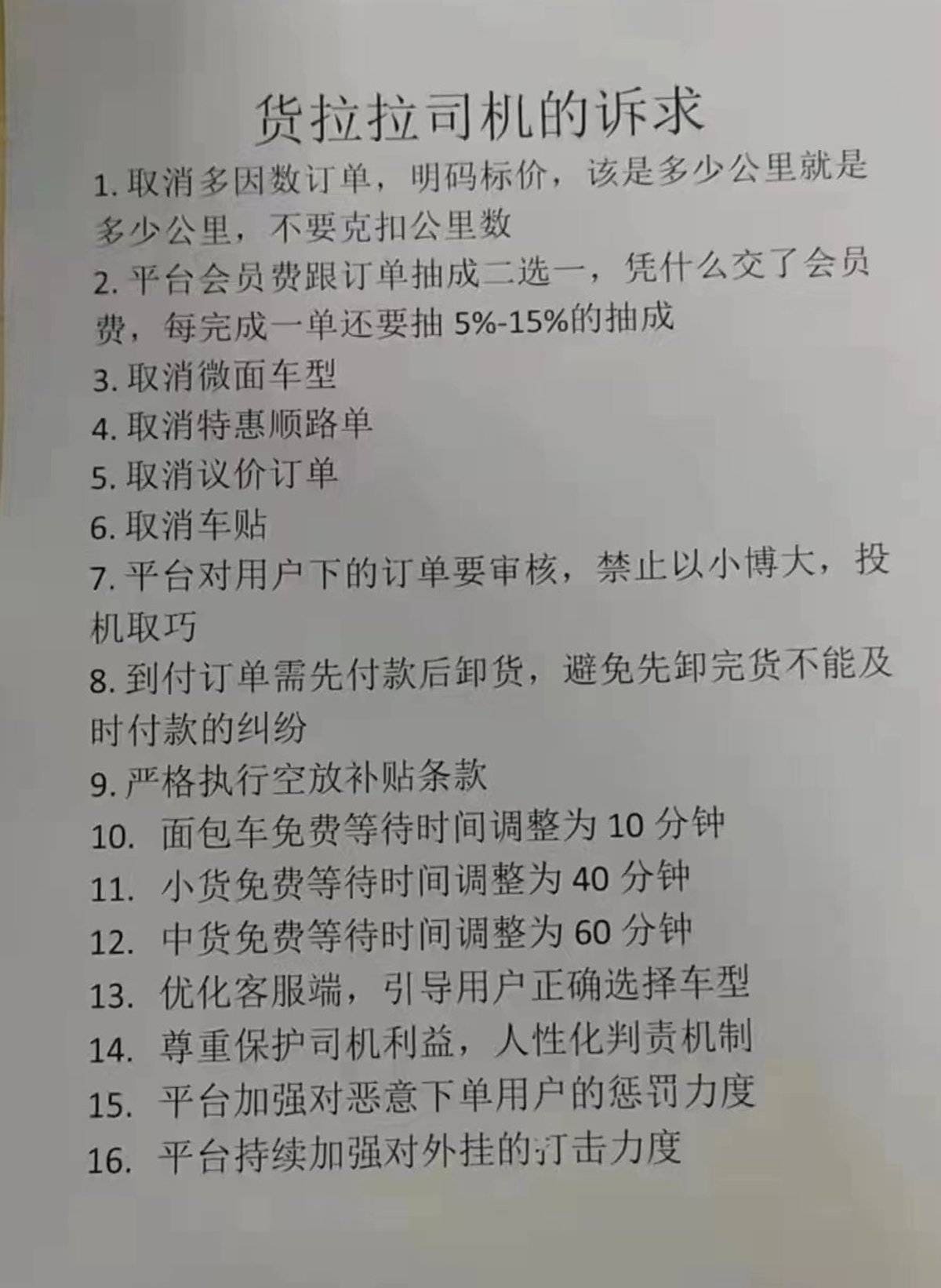 “今天不接单是为了明天更好”,“为什么交了会员费还要抽成”,11月16日,不少以货拉拉司机自称的网友在社交平台发布短视频,对货拉拉现行订单规则表达不满,并宣布未来三日不再接单。 据悉,本次停工是因为货拉拉推出多因素订单,在此类订单中司机看不到真实距离,极有可能导致订单价格下降,让原本就低迷的货运行情更低。 网传信息显示货拉拉司机自发组织全国平台用户放假三天,及11月16日、17日、18日停止接单,从而抵制货拉拉本次平台规则调整。 成立于2013年的货拉拉,是目前国内最大的同城货运平台。官方数据显示,截至今年8月,货拉拉业务范围覆盖352座中国内地城市,月活司机66万,月活用户950万。 值得注意的是,包括货拉拉在内的多家互联网道路货运平台,因“损害了货车司机合法权益”等问题,今年1月、7月、8月以及9月已四次被交通运输新业态协同监管部际联席会议办公室约谈。 今年9月30日,交通运输新业态协同监管部际联席会议办公室在最新一轮针对货拉拉等平台的约谈中指出,近期通过网民留言、群众来电来信等渠道发现,部分平台公司依然存在多重收费、压价竞争、拖欠货车司机运费等问题,损害了货车司机合法权益,并要求货拉拉等平台“切实保障广大货车司机合法权益”。 货拉拉面临的竞争和亏损压力,被认为是其与平台司机爆发纠纷的深层次诱因之一。 Analysys智库统计数据显示,2021年中国同城货运市场规模约为1.4万亿,预计到2026年能保持1.67万亿。快狗打车招股书显示,截至2021年底,货拉拉、滴滴货运、快狗打车分别以52.8%、5.5%、3.2%的市占率排名行业前三。 虽然市场规模巨大,但行业尚未形成一个成熟的盈利模式,即便是头部企业如今也仍然面临严峻的竞争和盈利压力。 以“同城货运第一股”快狗打车为例,其2018年至2021年期内分别亏损10.71亿元、1.84亿元、6.58亿元、8.73亿元。今年上半年,快狗打车公司权益持有人应占期内亏损约10.49亿元,同比扩大约3.25倍。 目前,货拉拉尚未上市,燃财经此前报道曾援引货拉拉创始人兼CEO周胜馥的话称,疫情期间货拉拉的订单量下降了约80%,今年2月份的亏损金额高达1个亿。