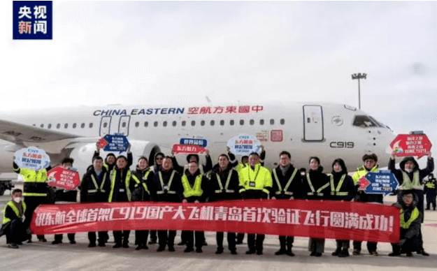 1月15日11时14分,航班号为MU7811的东航国产C919飞机顺利飞抵青岛。此次从上海虹桥国际机场飞抵青岛胶东国际机场执行验证飞行,标志着C919飞机100小时验证飞行再添新航点。
