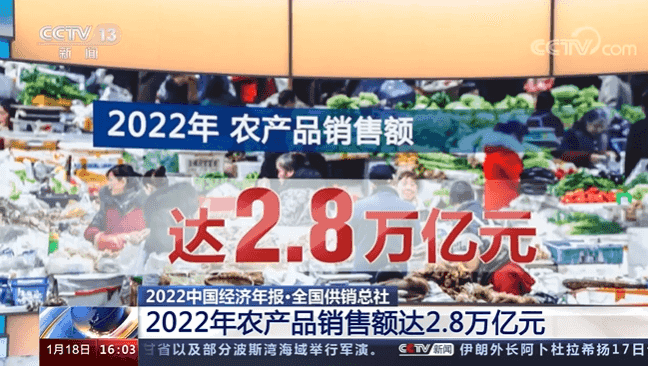 1月18日消息,中华全国供销合作总社最新发布,2022年全系统实现农产品销售额2.8万亿元,同比增长2.2%。2022年共投放近1000万吨国家和省级化肥储备;全程托管耕地服务面积8657万亩、同比增长25.6%。