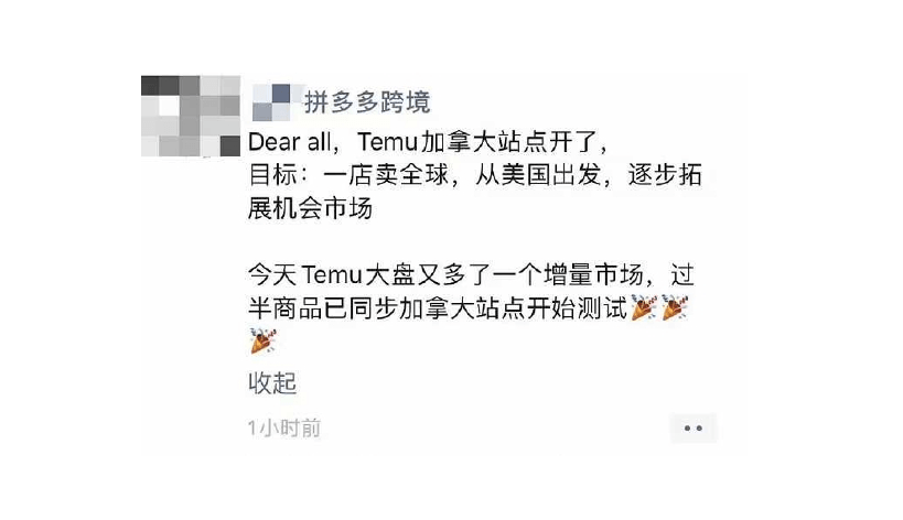 近日,有消息称拼多多跨境电商平台Temu已在加拿大建站,并陆续将美国站点的商品同步至加拿大站点。但这一消息并不准确,北美的Temu平台用户依然无法选择美国以外的收货地址,这意味着加拿大用户仍然无法使用Temu。 不过,与此前不同的是,Temu已允许美国以外的手机号码进行注册,而部分跨境电商商家也反馈收到了拼多多即将开通加拿大站点的通知。 今年1月末,拼多多的运营人员已通知部分商家准备加拿大站点的规划。预计最快将在今年第一季正式上线Temu加拿大站。