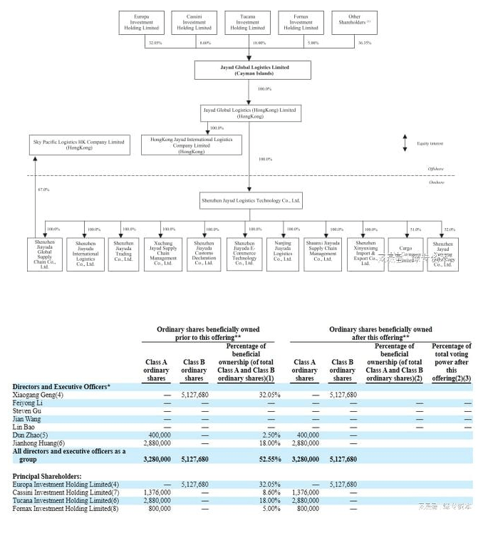 当地时间2月17日,深圳市佳裕达物流科技有限公司的控股公司Jayud Global Logistics Limited(以下简称:佳裕达)正式向美国证券交易委员会(SEC)递交IPO申请,拟以JYD为股票代码,申请在纳斯达克上市。披露显示,该公司最早于2022年9月21日向SEC递交秘密文件。 招股书中暂未披露发行量和发行价等信息。 佳裕达成立于2009年,总部位于深圳,是一家物流服务提供商,提供涵盖空运服务、海运服务、陆运、清关、物流配送、仓储、电子商务、跨境运输、物流软件系统开发等各个领域。根据官网介绍,该公司已与包括宁德时代、VIVO、OPPO、小米、联想、TCL、大族激光、中粮集团等在内的企业建立了战略合作关系。 财务数据 2020-2021年度,该公司的营收分别为2.9亿元、5.46亿元(8557万美元),这期间相应的净利润分别为305万元、1022万元(160万美元)。 2022年前六个月,佳裕达的营收为4.54亿元(6766万美元),上年同期为1.65亿元,这期间相应的净利润分别为962万元(143万美元)、244万元。 股权结构 IPO前,耿小刚持股32.05%,Dun Zhao持股2.5%,Jianhong Huang持股18%。贾晓华持股8.6%,Yu Yi持股5%。