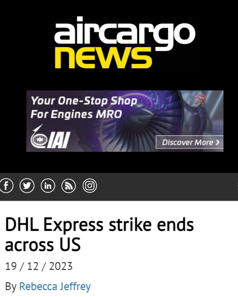 报道称,DHL快递公司在辛辛那提/北肯塔基国际机场(CVG)达成了一项“初步协议”,结束了DHL快递公司员工为期12天的罢工。卡车司机工会在声明中表示:“在DHLExpress被迫罢工后,本地100名卡车司机已达成一项临时协议,涵盖辛辛那提/北肯塔基国际机场(CVG)的1,100名坡道和拖车工人。”“临时协议立即结束了为期12天的不...