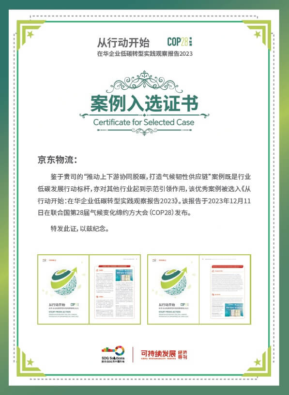 《联合国气候变化框架公约》第28次缔约方大会(COP28)近日在阿联酋迪拜举行,由中华环境保护基金会、可持续发展经济导刊主办的“加速低碳行动 凝聚应对气候变化的社会力量”主题边会于迪拜世博城COP28“中国角”举办,并发布《从行动开始:在华企业低碳转型实践观察报告2023》,京东物流入选报告并亮相COP28。京东物流入选...