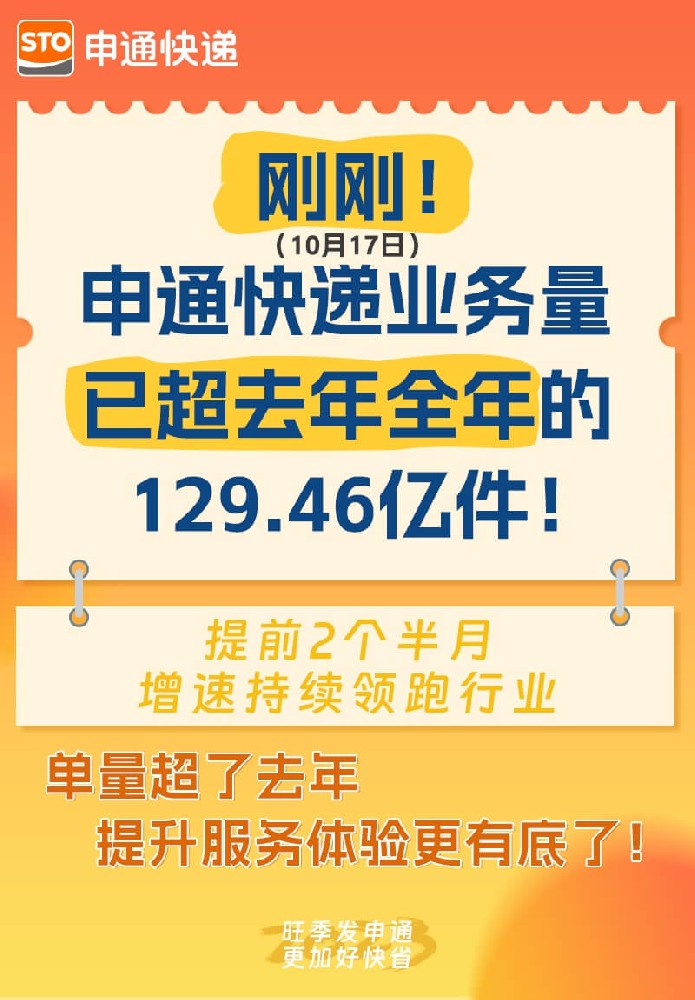 申通快递今天宣布其快递业务量达到130亿件,超过去年全年(129.46亿件)。单量快速增长的同时,申通的服务体验也同步优化:时效更快,终端服务更智能。背后是申通产能的不断提升。目前申通全网正常产能已突破6000万单/日,是2020年的3倍。图源:申通之声公众号申通快递2023半年度报告显示,今年上半年,申通完成快递业务量77.2...
