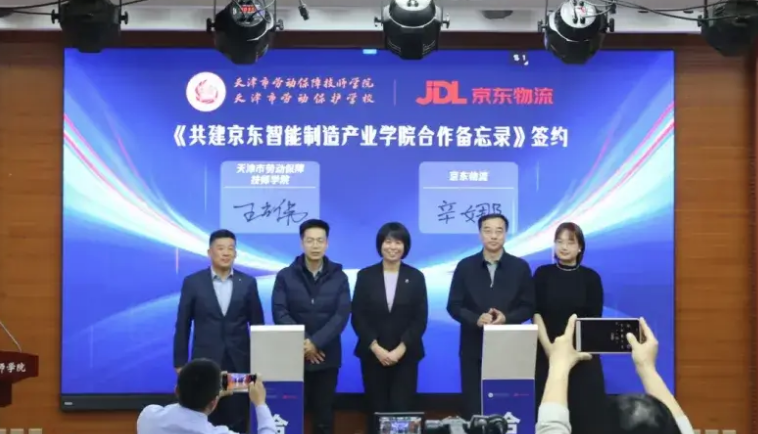 天津市劳动保障技师学院(天津市劳动保护学校)京东物流校园SMART智能工厂落成仪式暨京津冀智能制造产教融合与高质量发展研讨会近日在天津市劳动保障技师学院举行。启动仪式上,劳动保障技师学院与京东物流签订了《共建京东智能制造产业学院合作备忘录》和《高技能人才培养合作协议》,为“京东智能制造产业学院”“京东校园...