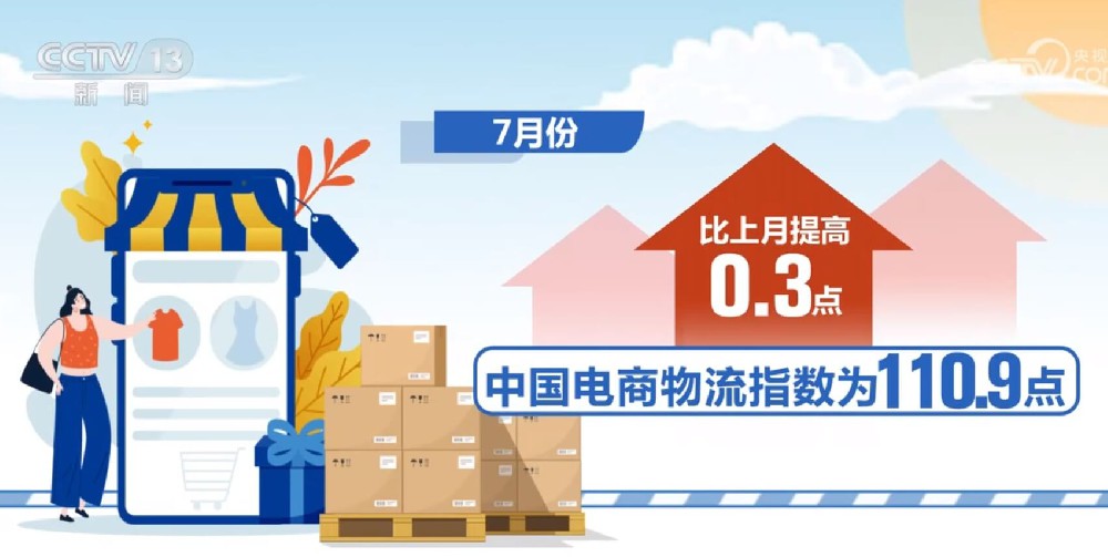 据央视新闻直播间报道,中国物流与采购联合会今天公布了7月份中国电商物流指数。受益于供给端各项指数的稳步上涨,中国电商物流指数较上月有所提高,继续保持连续上涨态势。7月份中国电商物流指数为110.9点,比上月小幅提高0.3个点。供给端各项指数表现良好,其中,物流时效指数、满意率指数、履约率指数和人员指数连续回升...