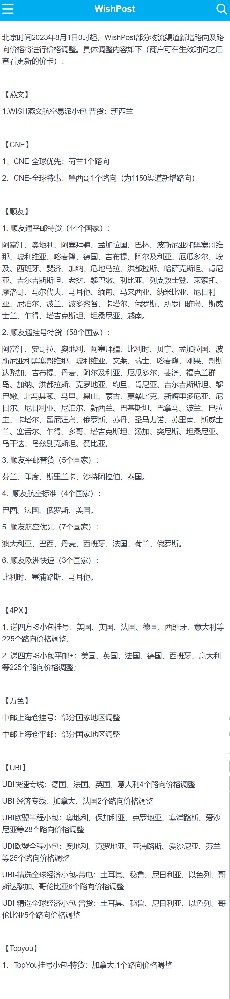 Wish商家平台发布公告称,WishPost部分物流渠道(或方向)将于北京时间2023年8月1日凌晨0点起进行调整,包括调价,方向将关闭或新增。商家可在北京时间2023年8月1日凌晨0点后登录WishPost官网,查看更新后的价格卡,适当调整使用的物流渠道。本次WishPost物流渠道和价格调整不会影响A+物流计划和EPC蓝单。WishPost持续与各物流...