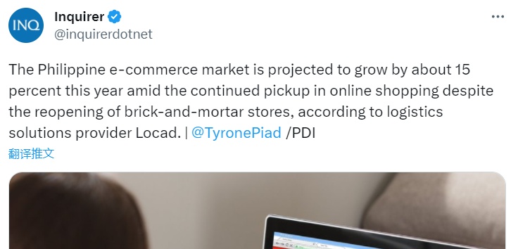 一、市场增长尽管当前全球经济正遭受持续的高通胀,但菲律宾的电子商务市场仍显示出充分的发展弹性。近日,据物流解决方案提供商Locad称,尽管实体店重新开业,但由于网购的持续复苏,今年菲律宾电子商务市场预计将增长15%左右。Locad的首席执行官兼联合创始人康斯坦丁·罗伯茨(Constantin Robertz)周三在一次活动中表示,到...