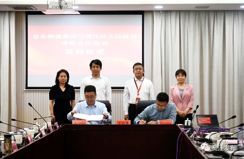 京东物流集团与贾汪区人民政府签署战略合作协议。京东物流集团副总裁徐勇,区委副书记、区长韩克,孟磊,区委常委、副区长沙波出席活动。根据协议,双方将在贾汪乡村振兴、物流服务、跨境电子商务、保税物流、多式联运等方面开展合作,共同打造东西双向开放的内陆国际中转枢纽和国际多式联运物流贸易中心。图源:贾汪发布官...