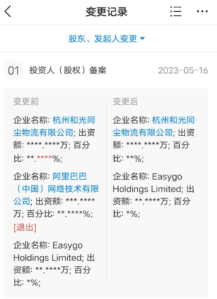 天眼查App显示,近日,杭州泛远国际物流有限公司发生工商变更,原股东阿里巴巴(中国)网络科技有限公司退出。杭州泛远国际物流有限公司成立于2004年8月。其法定代表人为王泉,注册资本约为4574万人民币。其经营范围包括国际货运代理、航空国际货运代理、海上国际货运代理等。现由杭州和光同尘物流有限公司和Easygo Holdings...