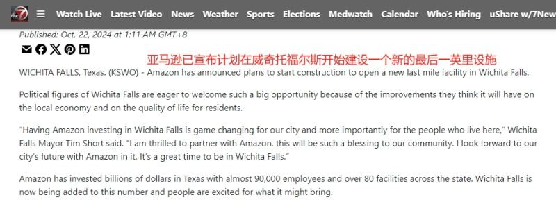 1.加强物流网络在物流配送能力方面,亚马逊向来是十分重视的近日,亚马逊宣布计划在威奇托福尔斯建设新的最后一英里设施,据了解,新设施选址于费舍尔路旁的城市商业园区,占地125000平方英尺。在威奇托福尔斯建设新的最后一英里设施 图源:kswo目前来看,亚马逊的这一举措,不仅能提升当地居民的生活质量,也能推动基础设施...