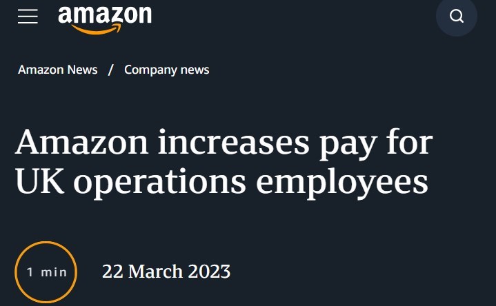 3月23日消息,有媒体报道,亚马逊将英国业务员工的最低起薪提高50便士到每小时11英镑至12英镑之间,并表示工资增长幅度取决于工作地点,并从四月起开始实施。亚马逊方面表示,“我们定期审查我们的薪酬,以确保我们提供有竞争力的工资,我们很高兴宣布英国运营团队的另一次涨薪。”在过去的七个月里,亚马逊的最低工资上涨了...