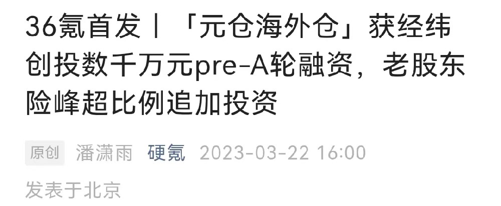 3月22日消息,东南亚跨境仓储物流服务商“元仓海外仓”近日获数千万元pre-A轮融资,本轮融资由经纬创投领投,老股东险峰长青跟投,山与资本长期担任独家财务顾问。本轮融资资金将主要用于仓储物流体系建设以及全流程配套系统研发。据了解,元仓海外仓成立于2021年,主要针对出海东南亚电商卖家提供专业、完备的一体化仓储物...