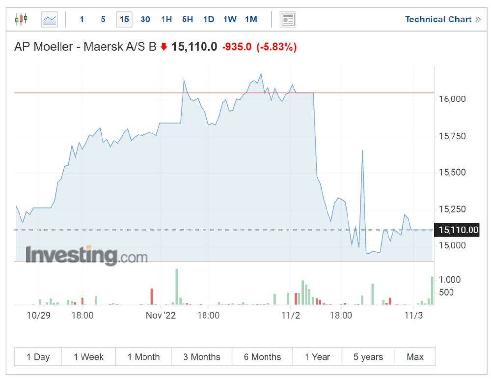 马士基三季度报告称“地平线上有很多乌云”,预期全球需求将下降。周三,马士基首席执行官Soren Skou接受媒体采访时表示“我们要么正在陷入衰退,要么很快就会陷入衰退”:欧洲肯定如此,美国也可能如此。今冬能源危机更严重,因此很难保持乐观,这将影响消费者信心,进而影响需求。在此之前,马士基发布了三季度业绩报告,...