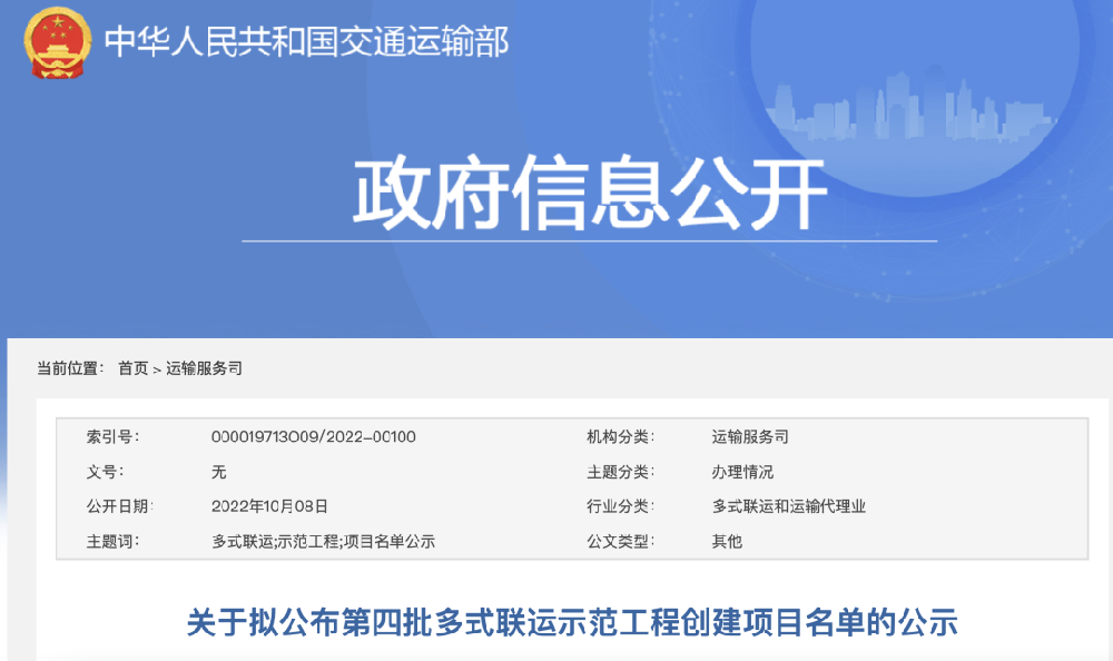 10月8日,交通运输部官网发布了《关于拟公布第四批多式联运示范工程创建项目名单的公示》。据悉,按照《关于组织开展第四批多式联运示范工程申报工作的通知》(交办运〔2021〕58号)有关要求,交通运输部联合国家发展改革委按程序受理了有关企业提出的第四批多式联运示范工程创建申请,并对申报项目开展了形式审查、条件预审...