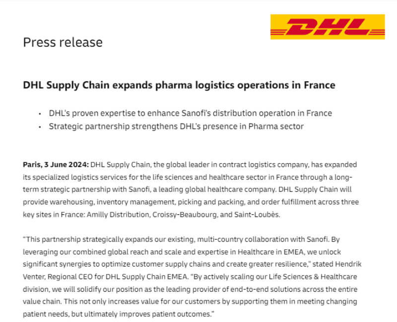 DHL供应链(DHLSupply Chain)宣布与医疗保健公司赛诺菲(Sanofi)建立长期战略合作伙伴关系,扩大其在法国生命科学和医疗保健领域的专业物流服务。DHL供应链将在法国的三个主要站点提供仓储、库存管理、拣选和包装以及订单履行服务:Amilly Distribution、Croissy-Beaubourg和saint – loublouds。“这种合作关系战略...