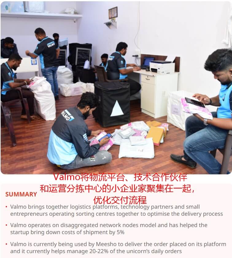 一、推出新物流平台为了更好地应对与亚马逊、Flipkart的竞争,争取更大的市场份额,Meesho正在持续发力电商物流。近日,据媒体报道,印度电商独角兽Meesho推出了一个名为“Valmo”的新物流平台,力图为小微卖家提供更好的配送服务,降低他们的物流成本,并填补该国供应链网络的空白。Meesho推出新物流平台Valmo图源:inc42具...