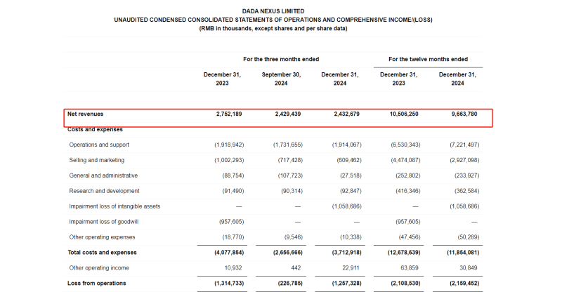 数据显示,达达集团2024年Q4营收24.33亿元,净亏12.27亿元,营业亏损为12.57亿元。2024年全年收入96.64亿元,增速下降8%;净亏损为20.385亿元;非公认会计准则净亏损4.26亿元,亏损进一步加大。图源:达达集团官网达达集团主要收入来自京东秒送和达达秒送。2024财年,达达秒送净收入58.05亿元,较上一年度增长44.6%;京东秒...