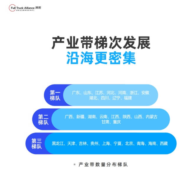 数字货运平台满帮根据平台数据统计分析,于今天对外发布《数字物流产业带报告》。该报告描述了物流数字化视角下的产业带分布,发布了全国、地方、产业榜单,并带读者从物流视角了解国民趣味产业。报告显示,我国数字物流产业带呈现梯次发展的特征,根据各省、市、自治区的产业带数量,共分成三个梯队。分别为以广东、山东为...