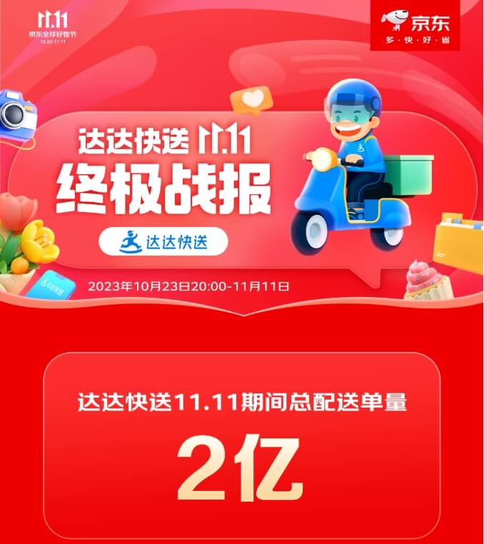 达达快送双11终极战报披露。数据显示,今年京东11.11期间,达达快送配送总单量达2亿,再创新高。京东11.11即时零售全国最快一单送达仅9分钟。百万达达快送骑士穿梭在全国2600多个县区市的街巷,为消费者提供最快分钟达、送货送上门的服务体验,保障京东11.11小时达。达达快送双11终极战报图源:达达集团黑板报达达快送依托自...