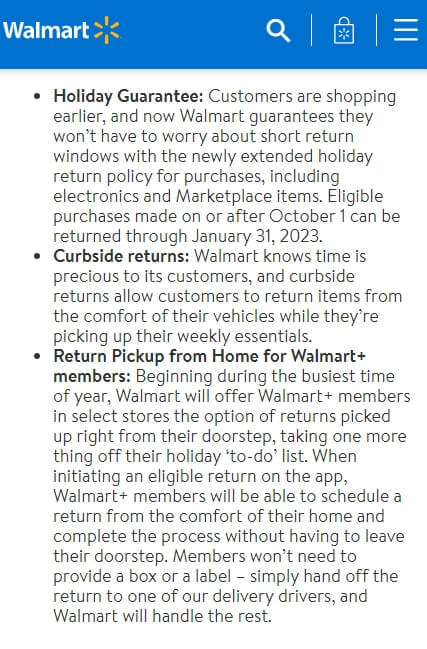 沃尔玛宣布将延长假日季退货窗口。客户在美国东部时间2023年10月1日至12月31日期间购买的商品退货期限延长至2024年1月31日,只有少数商品不在此政策范围内。沃尔玛表示,调整节假日退货政策将有助于卖家提高销售额,赢得更多回头客。其表示:“为了提高客户的灵活性和满意度,我们将为第三方市场表现最好的产品提供延期退货服...